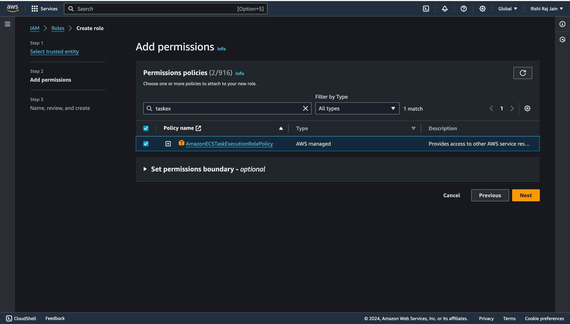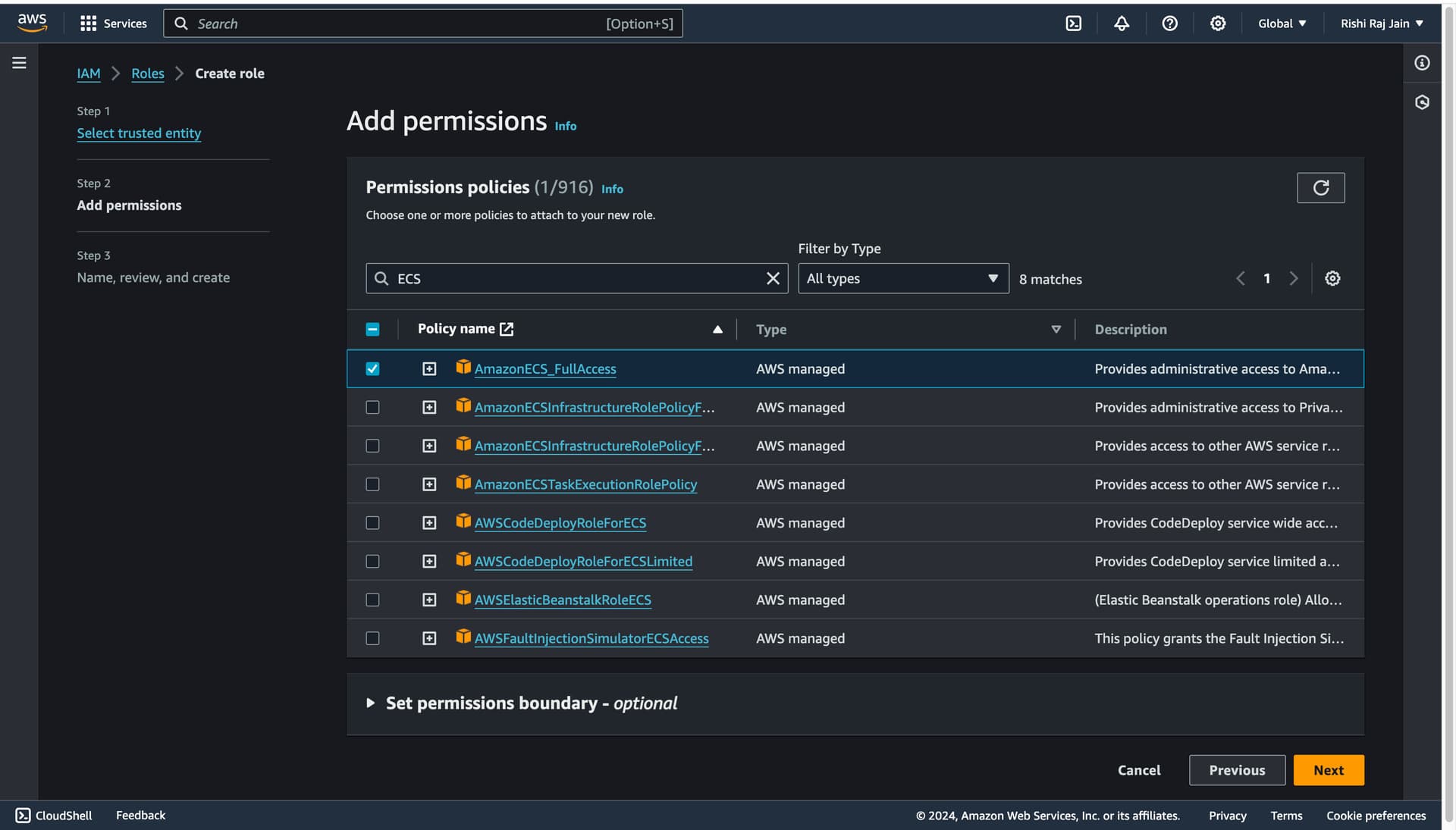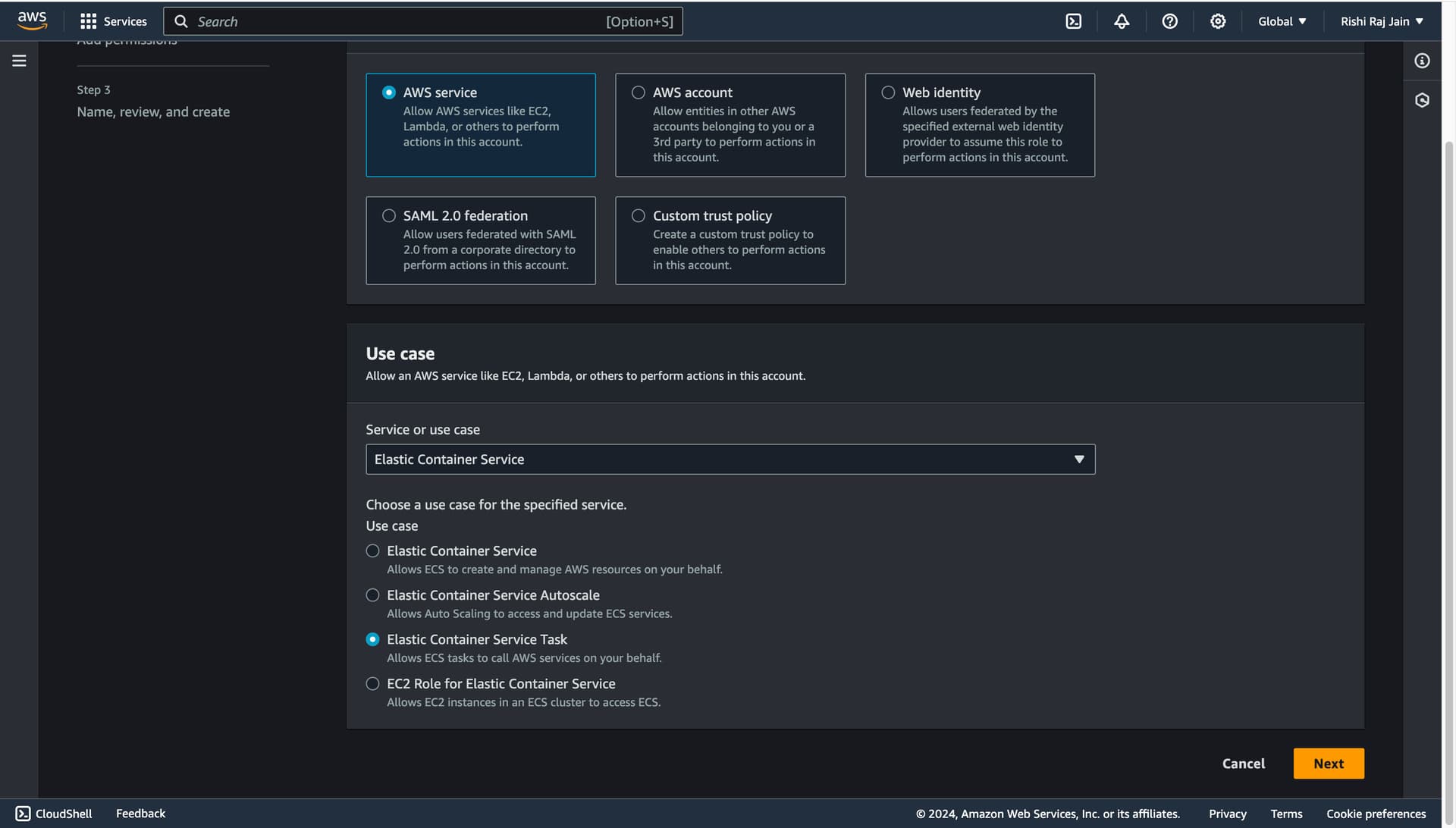You are now done creating an ECS Service in your ECS Cluster. Let's move on to creating access keys for IAM users for your account.
