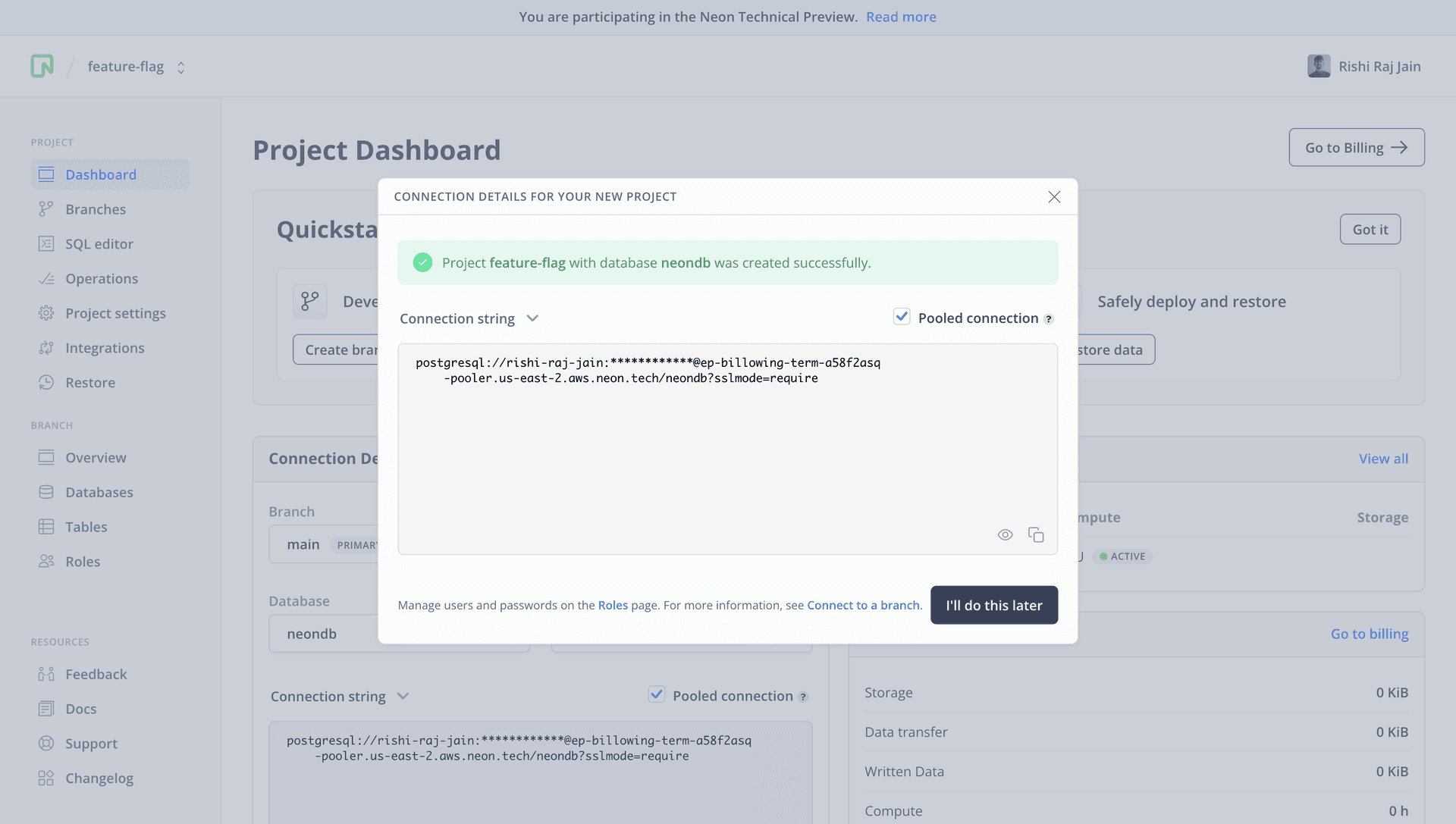 - A Neon account – The feature flags will be defined (or mutated) in a Postgres database